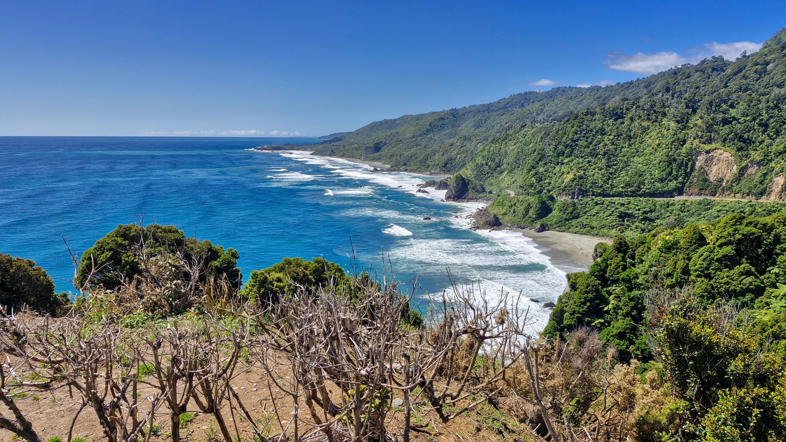 Irimahuwhero Look out, which is about midway between Greymouth and Westport. This photo is viewing north, towards Westport.