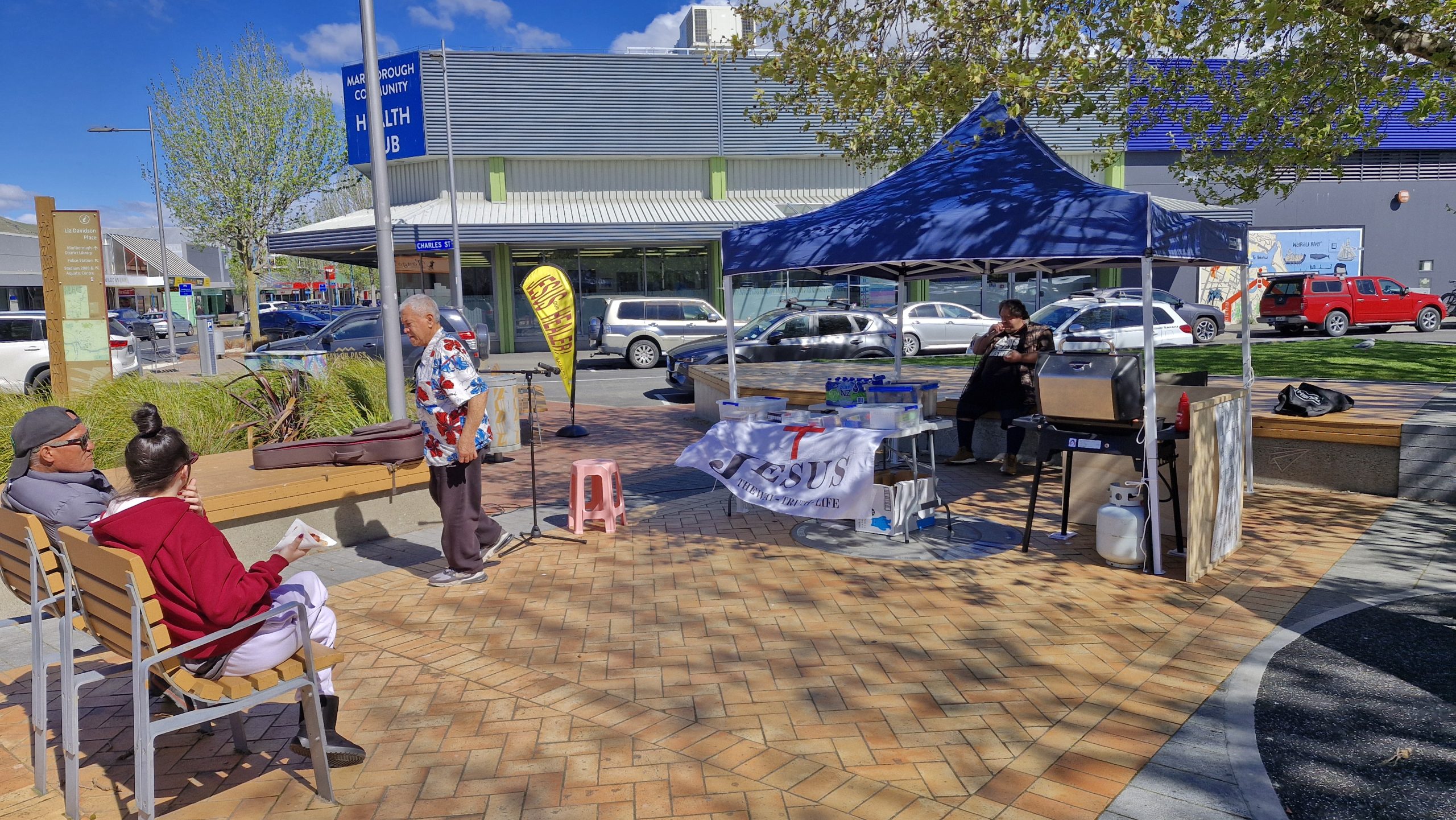 The next Day, Wednesday, we set up a barbecue on the Main Street, outside a local pub.