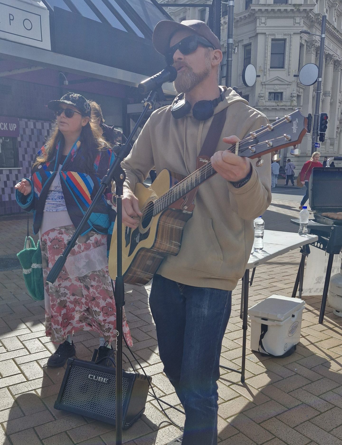 Tony and Johnnie singing a classic, which caught the attention of the crowds, as they passed through.